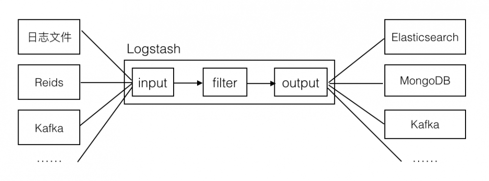 Logstash 就像是一个管子,左面接数据源接收数据,右面接存储目的地,管子中间有过滤器,对接收到的数据进行过滤,只存储符合要求的数据。