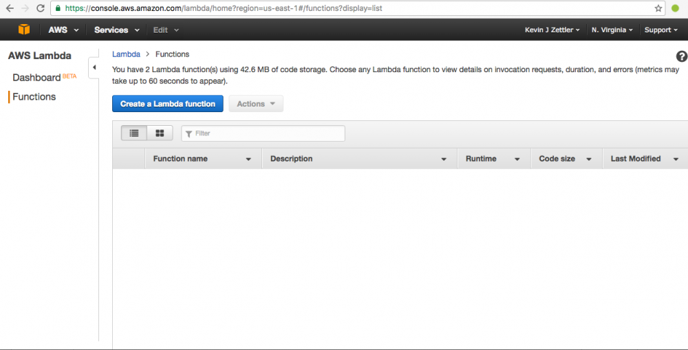 https://console.aws.amazon.com/lambda/home?region=us-east-1#/functions?display=list 然后会看到像这样的界面: