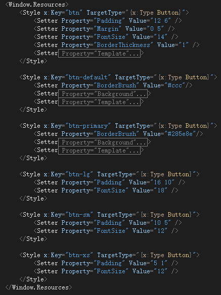 参照 Bootstrap 的按钮写了几个样式。具体的样式代码就不贴了,感兴趣的可以直接去 WpfMultiStyle.Test/MainWindow.xaml 看看。