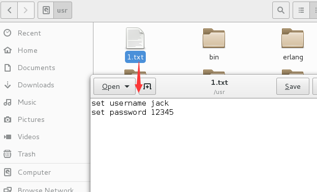 1. 首先找一个目录,这里就选择/usr/, 下面新建一个txt文件,命令还是非常的简单,执行两个set操作。