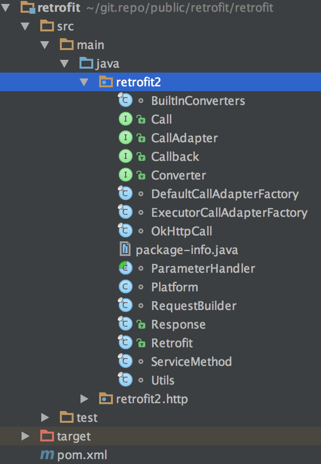从GitHub拉取Retrofit的源代码,导入retrofit子工程,核心代码都在retrofit包下。