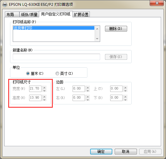 1. 在打印机首选项里面,添加你的针打纸张尺寸,多数针打都支持:
