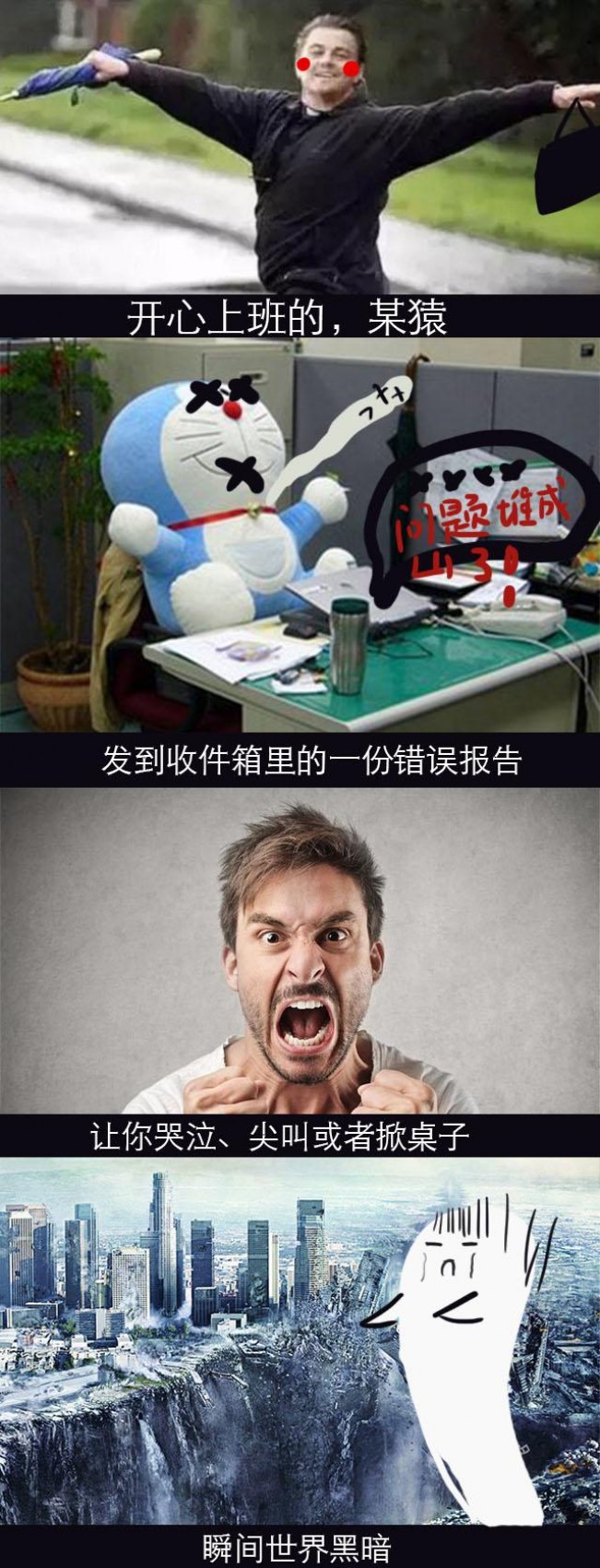 如果你觉得自己遇上了这种事,可能会在想有什么可以帮助你摆脱困境。不,我谈论的不是如何和你上司“撕逼”,而是不妨换一种角度来看待这种事。以下这些是我在职业生涯中遇到错误报告时曾产生的几种情绪,我确信你对至少其中一种情绪会感同深受: