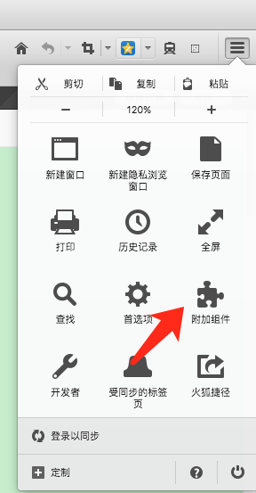 打开浏览器,点击右上角(三道杠)这里,选择下面的附加组件