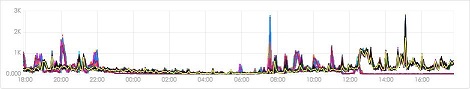 在推送系统中我们大量使用了消息队列(MQ)组件,将开发者的请求缓存在消息队列中,然后逐渐消费,缓解开发者集中式的推送带给我们系统的瞬间压力。上面第一张图是我们接入层接收到的开发者请求量,高峰期的请求量是平时的数倍甚至数十倍,第二张图是我们业务层使用MQ之后处理的请求量,可以看到曲线平滑了许多,缓冲效果相当明显。(这是在我们系统本身处理能力非常强大的情况下,否则缓冲作用会更加明显)