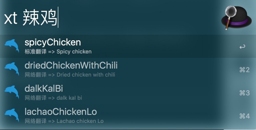 开发基于 Javascript 、 alfy 、 有道翻译api ;