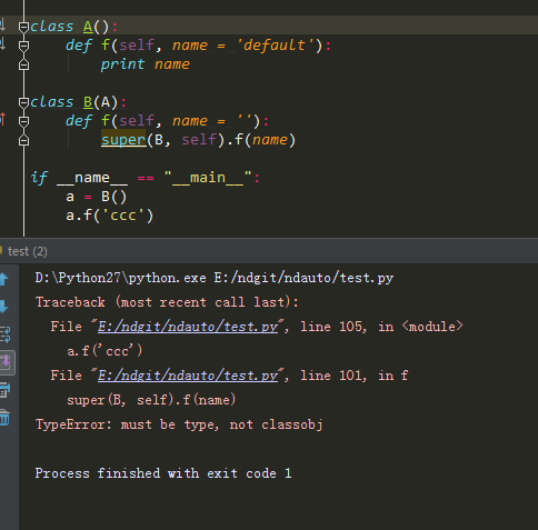 python中有两种方法可以调用父类的方法: super(Child, self).method(args) 和 Parent.method(self, args) 。我用其中的一种报了如下错误: