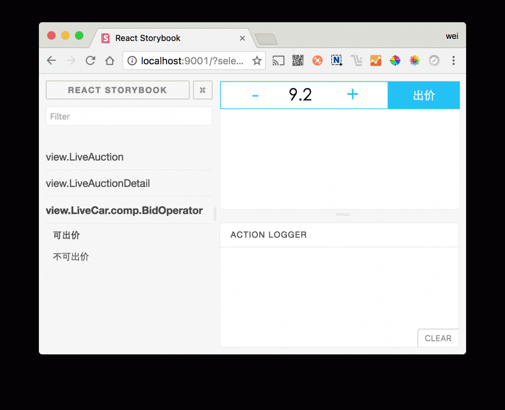 如下是某组件的两种状态,通过属性(userCanBid)传递即可快速的测试出不同状态下的comp,下面看下效果图: