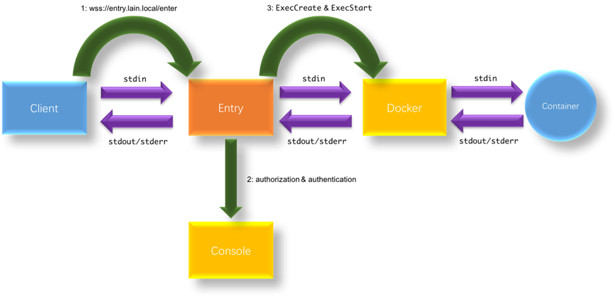 Entry是LAIN中一款设计较为精巧、技术含量较高的应用。其利用了WebSocket全双工传输的特点,在单进程容器的场景下实现了对容器的远程登录,同时保证了登录权限的控制。本文希望通过分享LAIN中Entry的设计与实现,为需要开发远程登录容器功能的PaaS同行提供技术方案参考。Entry已经开源,地址在( https://github.com/laincloud/entry ),欢迎一起讨论交流学习。