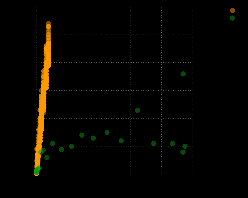 图1 GC停顿时间——Go 1.5 vs. Go 1.6