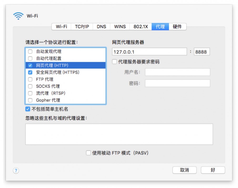 这个步骤,需要开启 Charles ,并设置 Charles 为系统代理。Firefox 可以直接设置,Chrome 网络设置实际上就是修改的系统的网络设置,步骤为 系统偏好设置 -> 网络 -> 高级 -> 代理 一图胜千言
