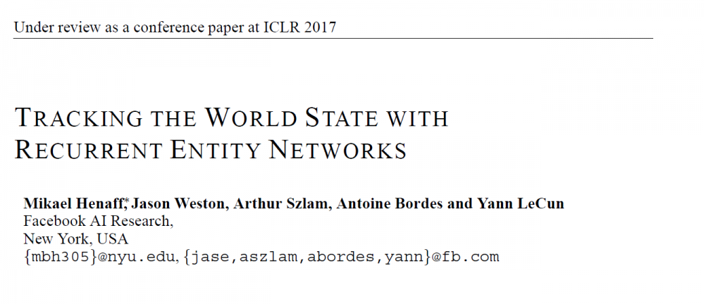 论文标题:TRACKING THE WORLD STATE WITH RECURRENT ENTITY NET WORKS