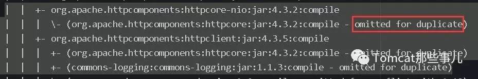 看上面的提示omitted for duplicate。而上面关于codec的依赖,是因为artifactId被换成了org.springsource.org.apache.commons,这样maven的机制就不会生效,导致项目里出现了两个codec的jar。而且,codec.jar虽然对于org.springsource这个指定的,虽然artifactId是这个,但里面的包名还是一样样的org.apache.commons,所以是相同于两个一模一样的Jar,只是版本不同。