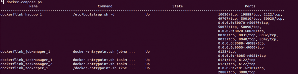docker-compose启动flink集群,并查看容器启动是否正常: