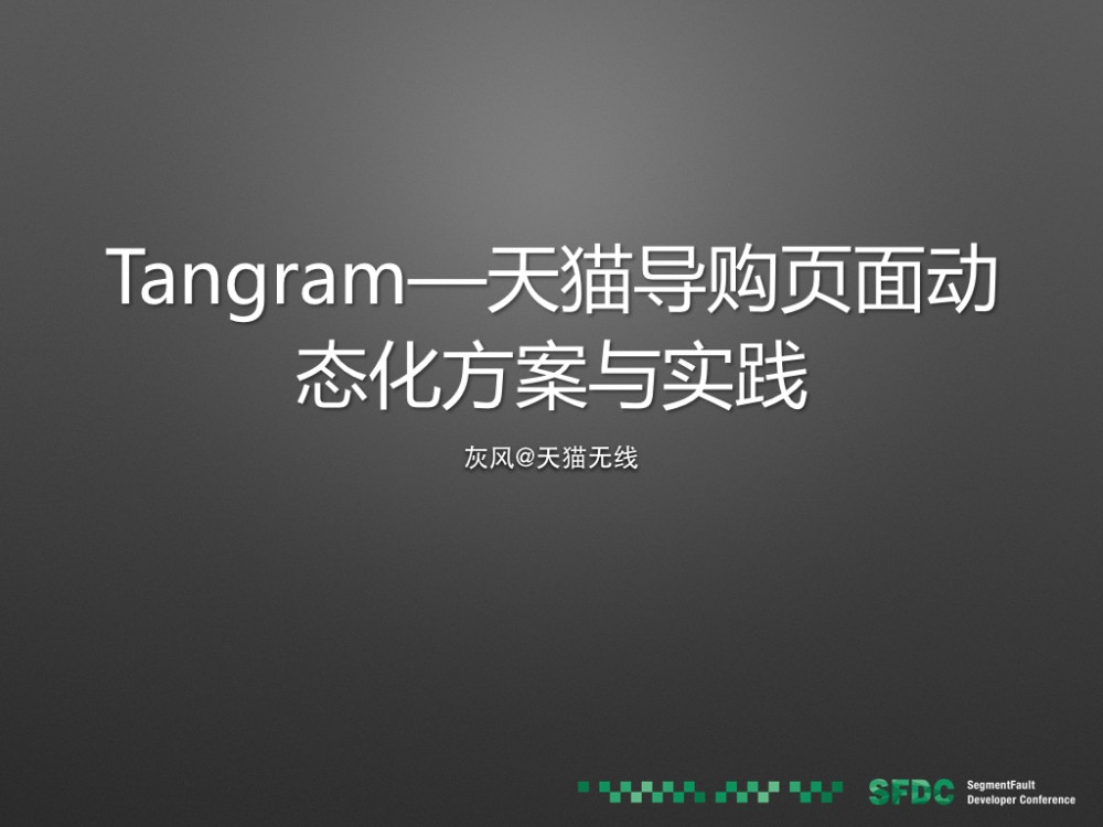 12月10日在SFDC(SegmentFault Developer Conference)大会上初次介绍了手机天猫的Tangram方案,现场时间有限,讲得匆忙,特此整理记录。这篇内容是Tangram的整体介绍与相关业务开发实践的介绍,后续逐步会将更详细的方案整理成文分享出来。