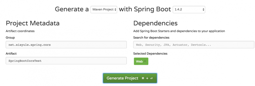 打开 http://start.spring.io/ ,添加 Web Dependency,然后选择 Generate Project,下载 zip 文件,就得到了一个 spring boot demo。