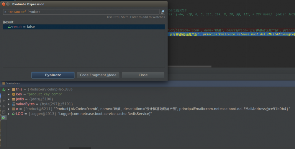 WTF! IDE都识别出来了变量o是Product类型,但是后续的强转还是失败。经过我的测试发现所有的通过redis反序列化出来的类都有这个问题。万般无奈之下,我陷入了深深地沉思之中…之中…中…