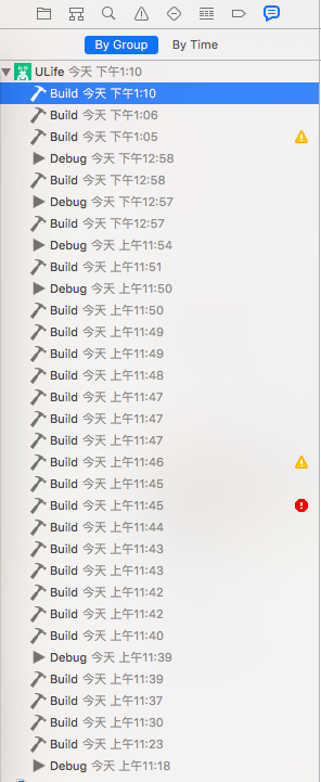 通过多次编译查看,发现在Xcode左边栏,最后一个选项,是每次的编译运行等记录, 每行记录中都会有每次编译的文件编译记录。如下图