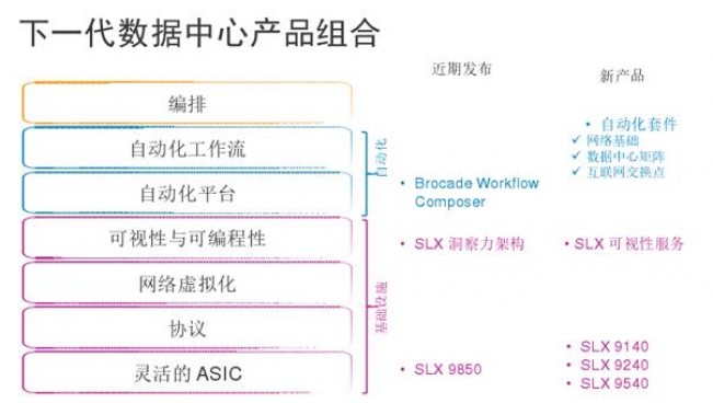 · 自适应平台灵活性:通过可编程ASIC、开放式API以及自适应新兴速度、标准和协议的设计,博科SLX 产品组合在数据中心堆栈的所有层面实现了敏捷性。
