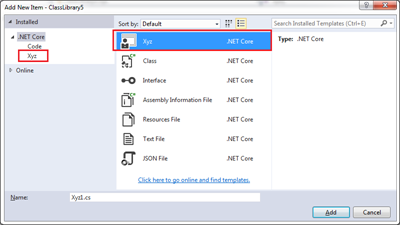 按照惯例,我们只需要将这个zip文件拷贝到%userprofile%Documents/Visual Studio 2015/Templates/ItemTemplates/.NET Core“目录下就可以了。但是为.NET Core项目添加Item的时候并没有看到它。
