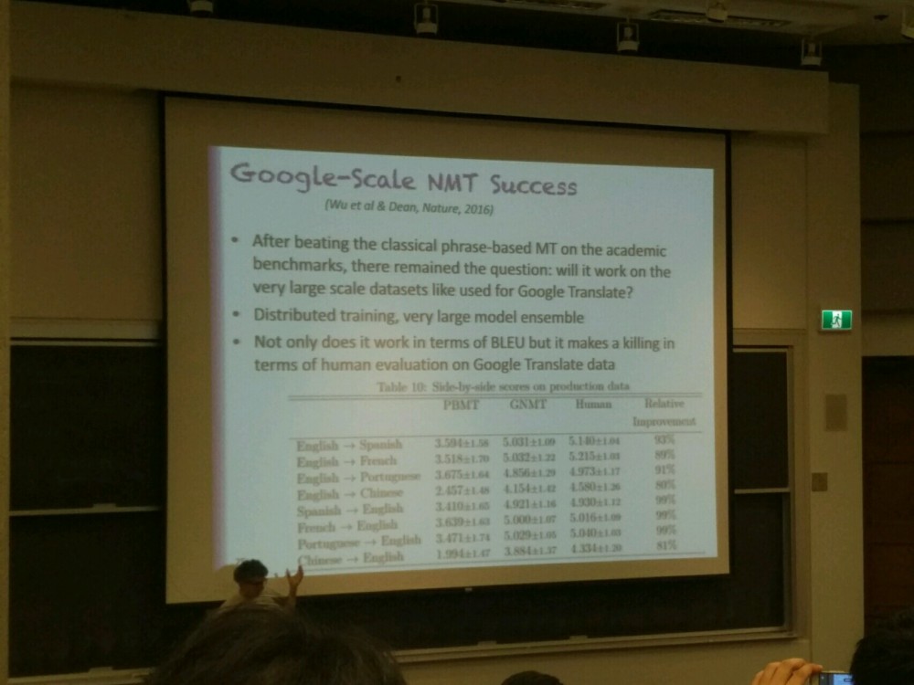 这个最好通过一个例子来解释。当我们在从左向右一次翻译一个词地将法语翻译成英语的时候,如果能够注意到每个词在原法语句子中的位置,那么就会给我们的翻译结果提供很大的帮助;因为在一个句子中,一个词可能会给其后面的词带来很大的影响。事实已经证明,这种注意(attention)的概念是很重要的。会出现这种情况的原因是我们使用了反向传播。我这么说是因为我们使用了涉及参数的一些损失函数的梯度,我们需要所有的计算都是可微分的(你可以将其看作是可微分的注意)。因此,除了注意特定的位置,我们还在每一个可能的位置上有一个概率(其对应于权重)。所以当我们根据梯度改变权重时,我们本质上只是将注意转移到了另一个地方(参见论文《Neural Machine Translation by Jointly Learning to Align and Translate(Bahdanau, Cho, Bengio)》了解更多。)