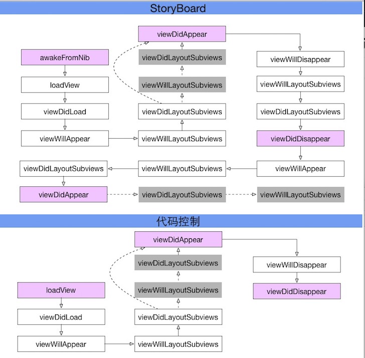 注意到其中的viewWillLayoutSubviews和viewDidLayoutSubviews,调用情况视具体的viewDidLoad和viewWillAppear等方法中的代码而定。