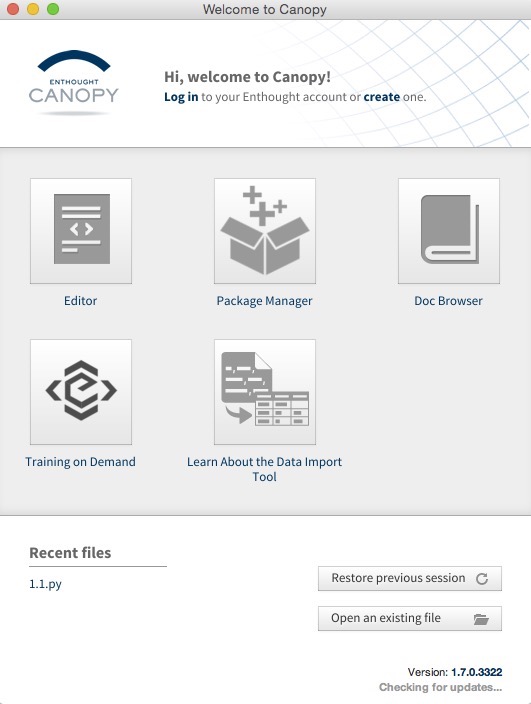 Canopy是Python科学计算的集成环境,里面集成了你所知道,你所需要的所有python科学计算需要的module,这是他的主页截图。