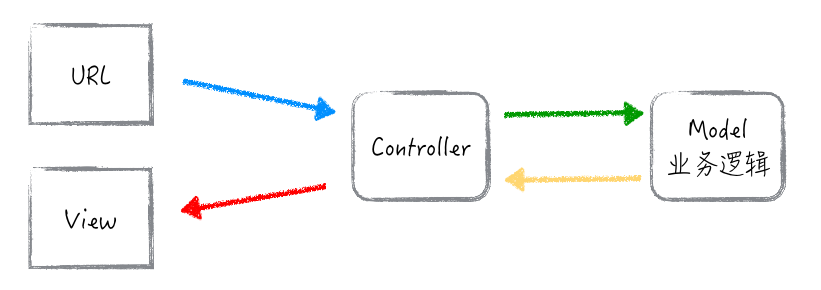 这一章我们要讲的是 MVC 的 C,也就是 Controller。在 Web Application 里谈到 Controller,我们就不可避免地要了解 MVC 对数据处理的流程 和涉及 路由 这个概念。大家可以通过这个简略的流程图来辅助理解下面的一些概念。