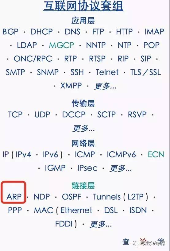 ARP(地址解析协议)是一种把 物理地址 地址转换成 逻辑地址 的通讯协议,它属于TCP/IP协议栈中的 数据链路层 协议。下图是Wiki上的一副截图