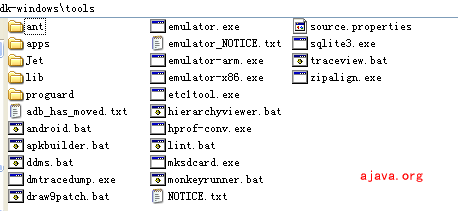 tools/lib目录:包含Android tools各种工具的jar包、dll、exe、资源文件等。从下图就可以看出此目录的重要性,