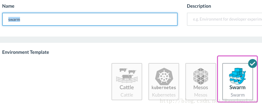 部署方面秉承Rancher一贯的原则,非常简单,只需要在创建Env时选择Sawrm即可。