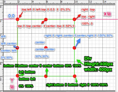 top 、 right 、 bottom 、 left 和 center px 、 em 、 rem 等 % 大家最常用的是值也可以说最了解的值是 关键词 和 长度值 ,当然 百分比 也会使用,然而百分比使用最多的是 0% 、 50% 和 100% 。