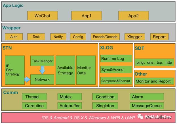 在基础模块的开发中,设计尤为重要。在设计上,微信基础组件以跨平台、跨业务为前提,遵从 高可用,高性能,负载均衡 的设计原则。