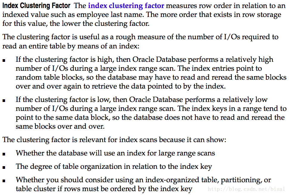 Factor,听着名字就很高大上,很学术。题外话,记得几年前的一次内部分享,dbsnake介绍一案例的时候,曾问过在场同事其中涉及的一个知识点是什么,如果知道就意味着你对索引的了解很深入,可惜当时没人反应,作为小白的我自然也不知道,当时的这个知识点就是聚簇因子,下来我仔细了解了下,确实这些东东,如果经常用到自然脱口而出,可惜这种机会只能靠自己。