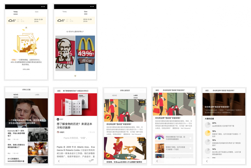 最近集中开发了两款微信小程序,分别是好奇心日历(每天一条辞典+一个小投票)和好奇心日报(轻量版),直接上图: