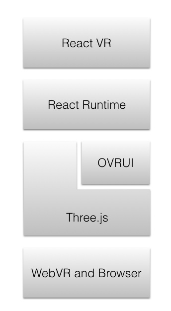 React VR基于React Native框架和React Runtime构建,整个框架可以分为若干层,如下图: