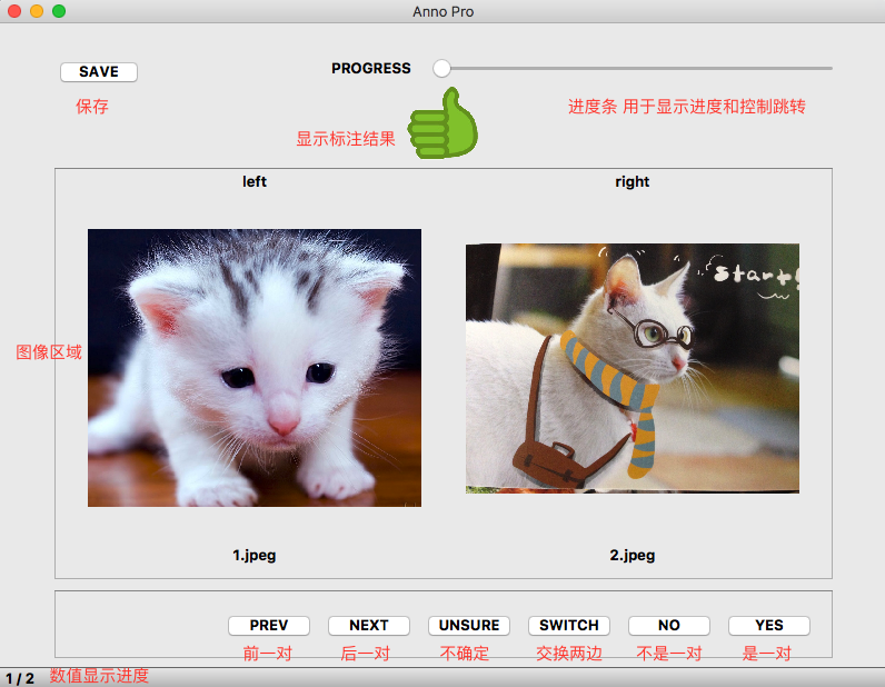 当然考虑到有时候需要标注的list可能很大,可以加入跳转的功能。标注结果都保存在内存,用户可以随时更改,点击保存,则写入硬盘。