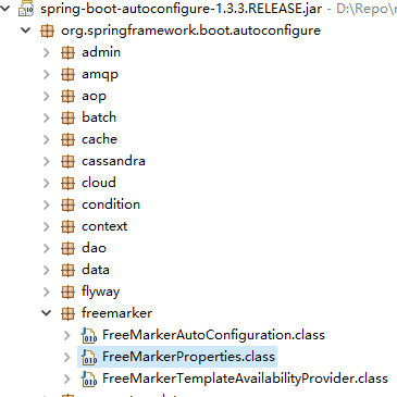 突然,你是不是发现 spring.factories 文件是相当重要呢?对的,Spring Boot 通过扫描这个文件中的内容,判断有哪些自动配置。以 FreeMarker 为例,我们来看下它是如何配置的。