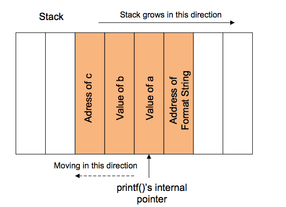 如果我们让printf函数得到格式字符串中的目标内存地址 (该地址也存在于栈上), 我们就可以访问该地址.
