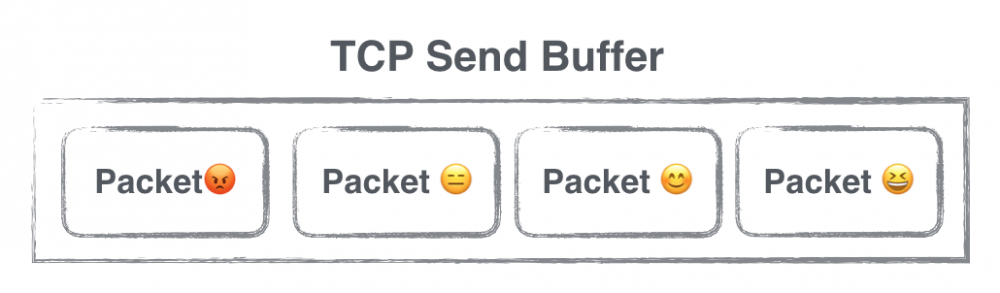 此处需要科普一点TCP协议相关的知识。我们通过HTTP请求发送数据的时候,实际上数据是以Packet的形式存在于一个Send Buffer中的,应用层平时感知不到这个Buffer的存在。TCP提供可靠的传输,在弱网环境下,一个Packet一次传输失败的概率会升高,即使一次失败,TCP并不会马上认为请求失败了,而是会继续重试一段时间,同时TCP还保证Packet的有序传输,意味着前面的Packet如果不被ack,后面的Packet就会继续等待,如果我们一次往Send Buffer中写入大量的数据,那么在弱网环境下,排在后面的Packet失败的概率会变高,也就意味着我们HTTP请求失败的几率会变大,类似这样: