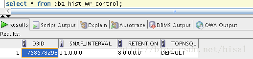 2、AWR默认60分钟采集一次统计数据,保存一周,然后删除。统计数据保存在数据库中。