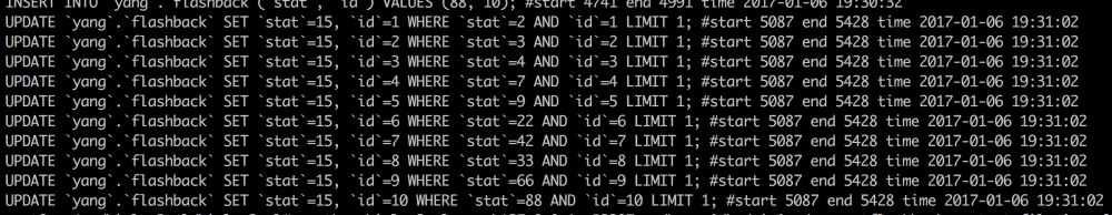 2 利用binlog2sql 恢复数据,先解析binlog获取 update 语句的起始位点,本例中 start 5087 end 5428