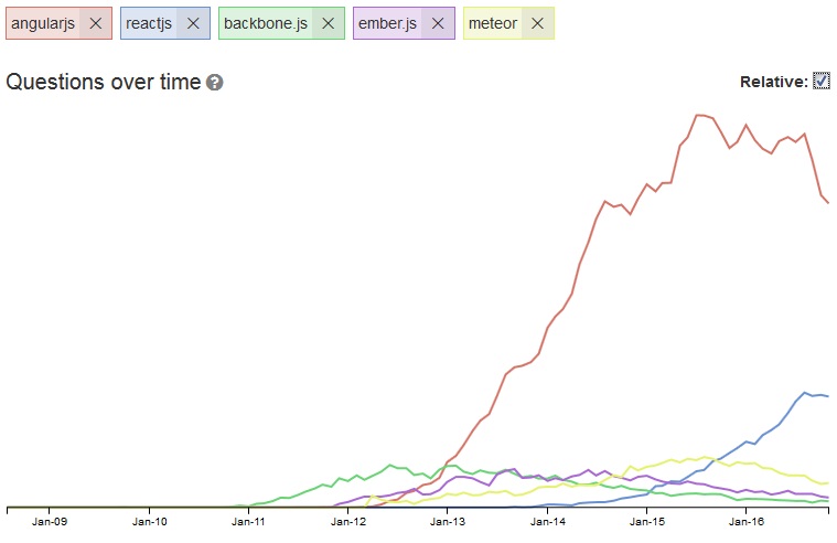 由于具有实现更高性能的浏览器和智能电话应用程序的潜力,单页应用程序 (SPA) 技术在软件行业引起了广泛的兴趣。在过去 5 年多的时间里,开发人员对 Angular (一个开源 SPA 框架)的兴趣远超他们对其他 Web 框架(React、Backbone、Meteor 和 Ember)的兴趣,这从 StackOverflow 网站上针对每种 Web 框架的问题数量上可以判断出: