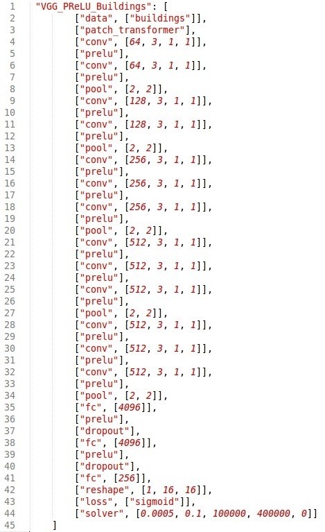 得到栅格数据之后,下一步是利用Caffe开源框架和CNN模型对系统进行训练。如图所示为CNN模型的一种参数设置。