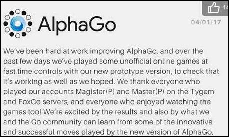 2016年12月29日至2017年1月4日,谷歌AlphaGo的升级版本以Master为名,在弈城围棋网和野狐围棋网的快棋比赛中对人类最高水平的选手取得了60:0的压倒战绩,再次让人们对围棋AI的实力感到震惊。