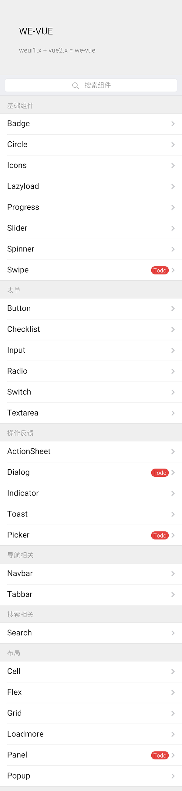we-vue 结合 vue2.0 强大的组件化机制和 weui 的微信官方视觉样式,形成了一套灵活的组件,适用于微信公众号等移动端开发。