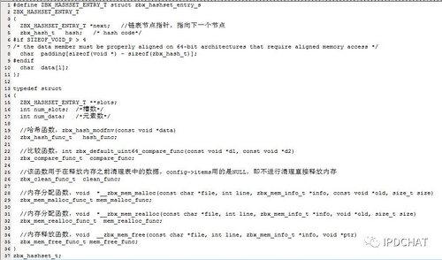 Zabbix采用的是链式哈希表,哈希表中的每个slot都是一个链表。具体的数据结构定义如下: