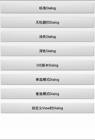 创建列表对话框,包括单复选模式实际上都是单行文本模式列表,如果想要支持更复杂列表,可以更改源码或者传入一个自定义View。