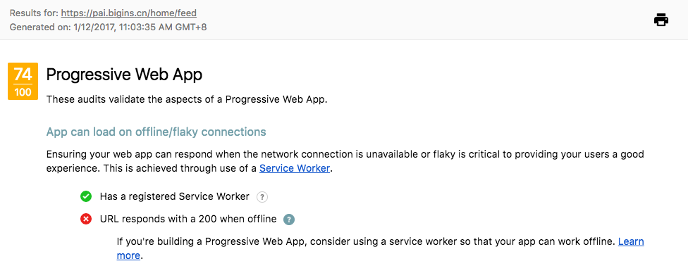 确实,这样,我们就已经完成了注册,这也是 PWA 和微信小程序这种二流方案不同的地方,其更注重于如何提高现有设计实现下的体验,使用开放的标准并进行推进。
